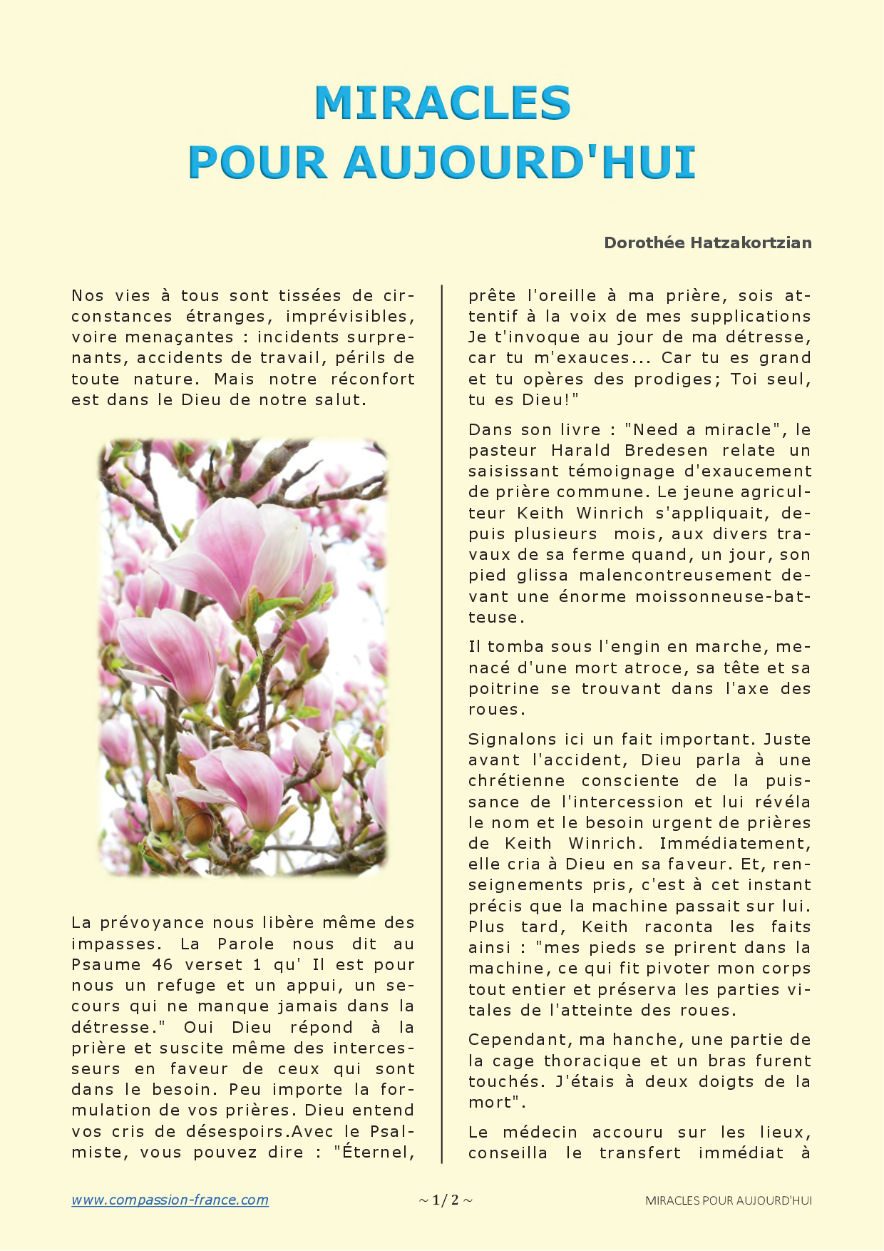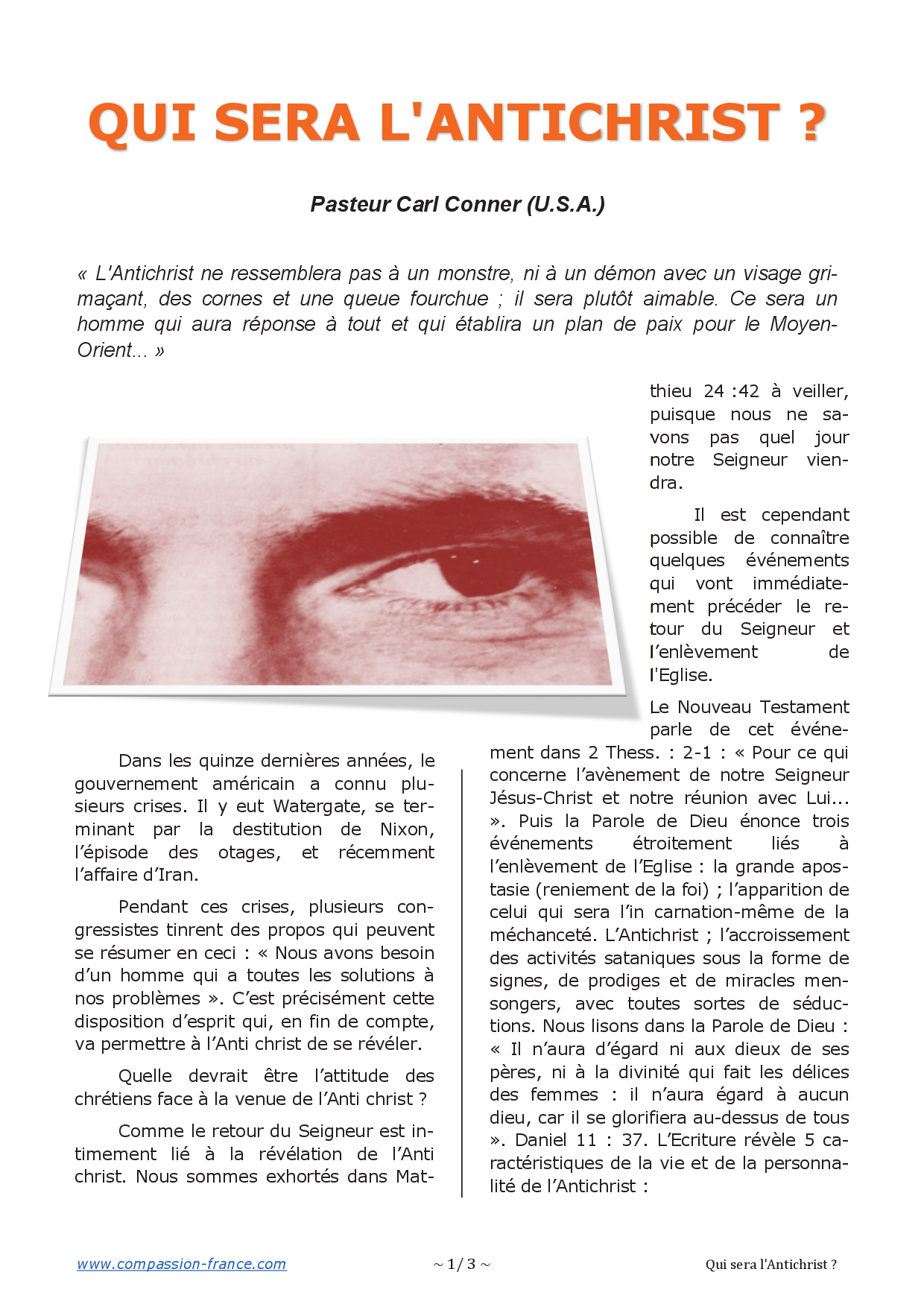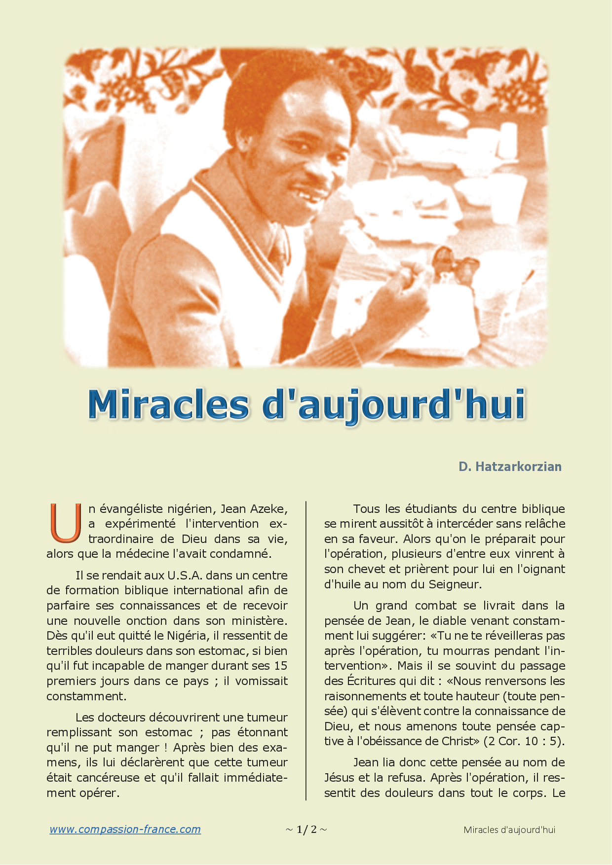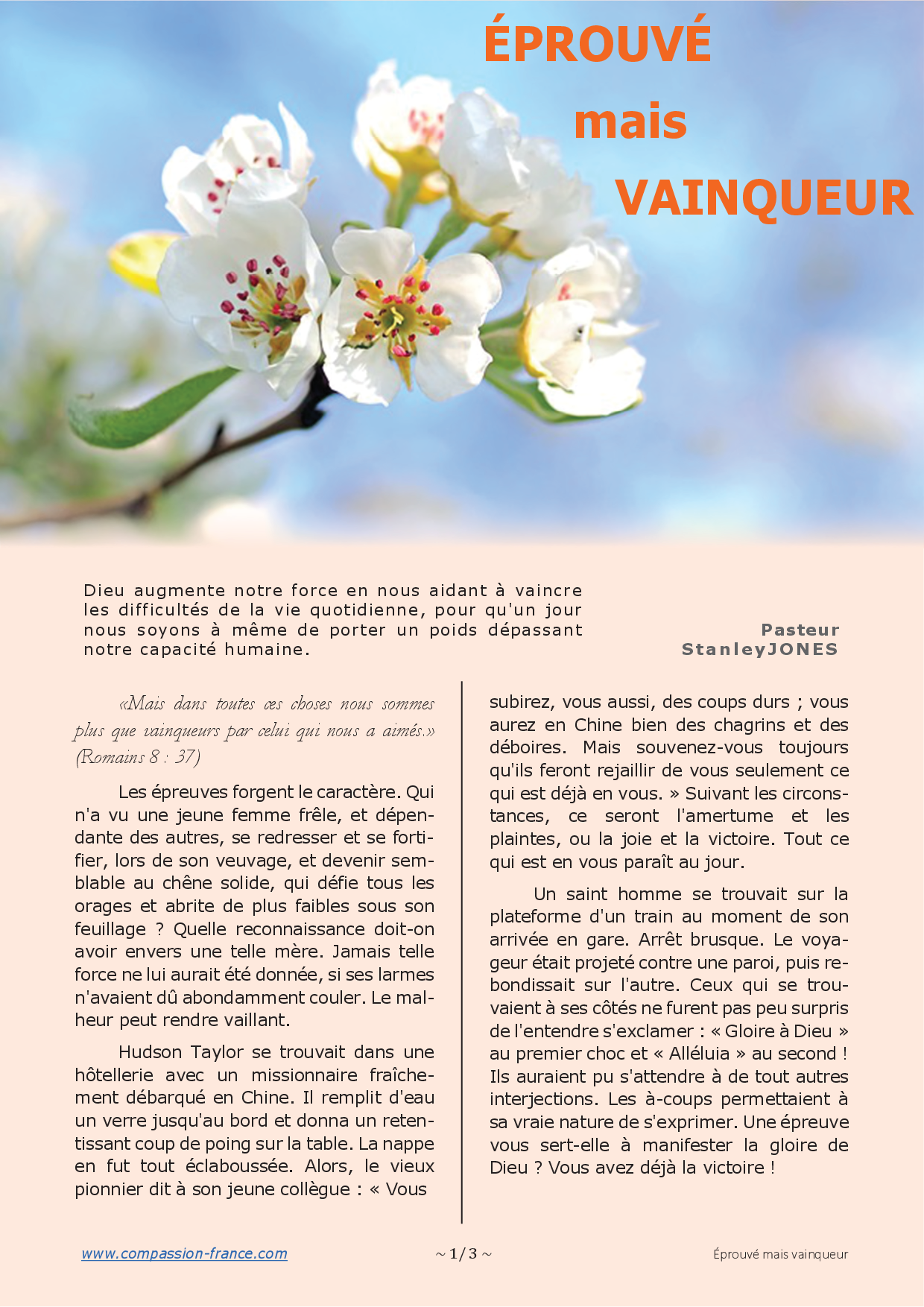 Nous avons ici le plaisir de mettre à votre disposition des messages, sermons et études bibliques de serviteurs de Dieu de nombreux pays, extraits de notre magazine Compassion, diffusé pendant 20 ans dans le monde. Tous ces articles vous seront d’une grande bénédiction pour votre vie personnelle et également une source d’inspiration précieuse pour le ministère.