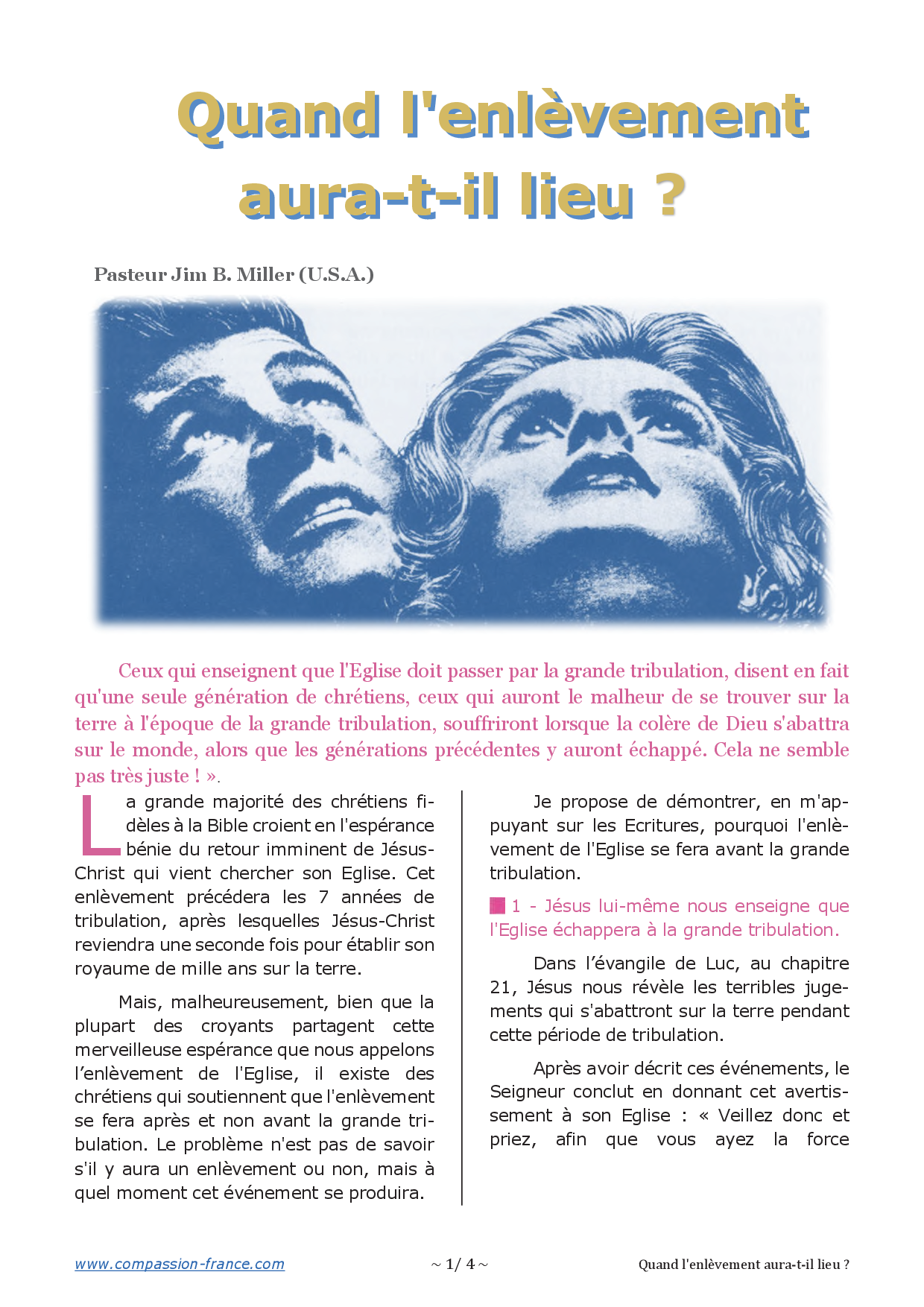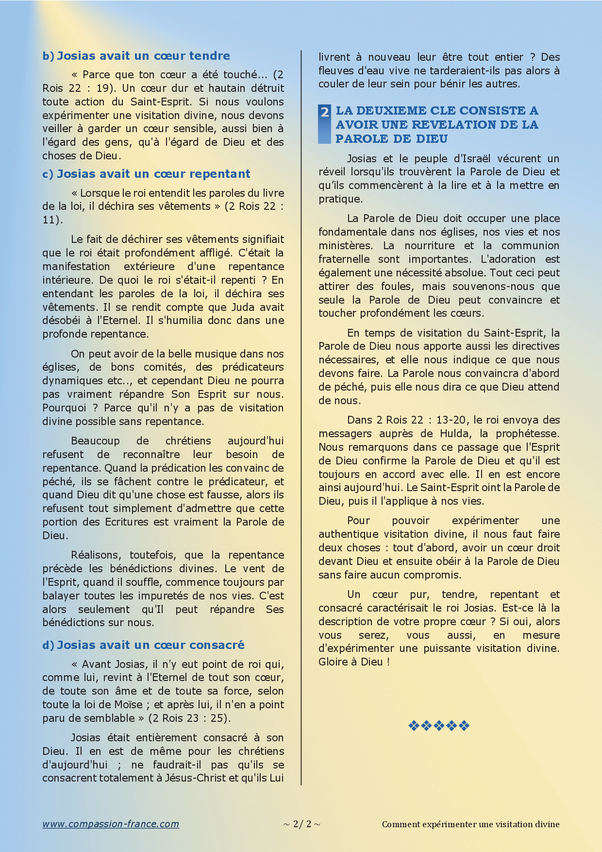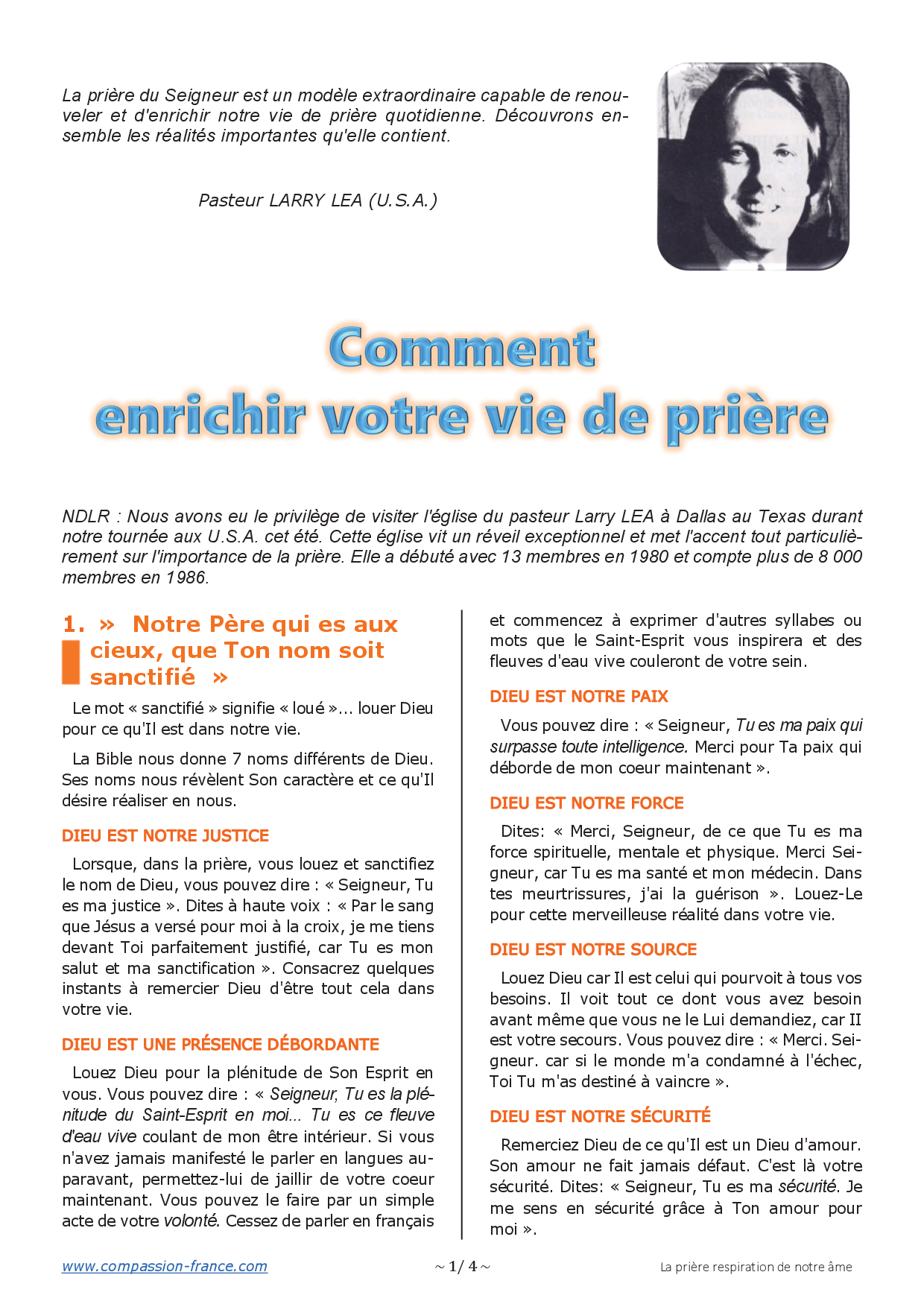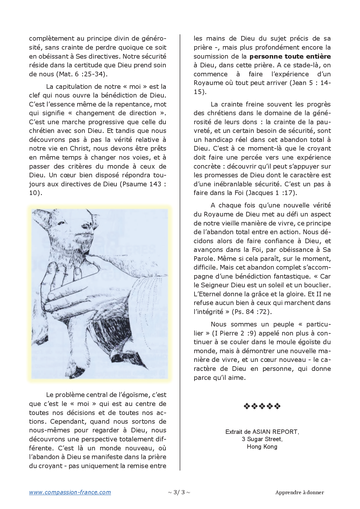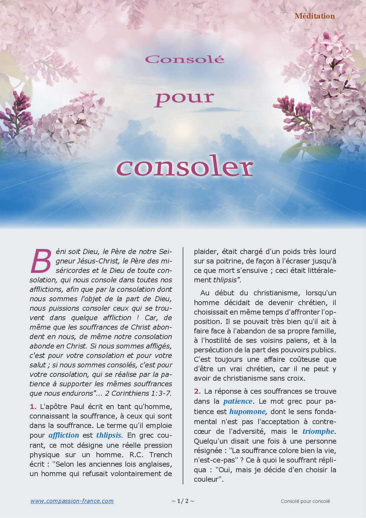Nous avons ici le plaisir de mettre à votre disposition des messages, sermons et études bibliques de serviteurs de Dieu de nombreux pays, extraits de notre magazine Compassion, diffusé pendant 20 ans dans le monde. Tous ces articles vous seront d’une grande bénédiction pour votre vie personnelle et également une source d’inspiration précieuse pour le ministère.