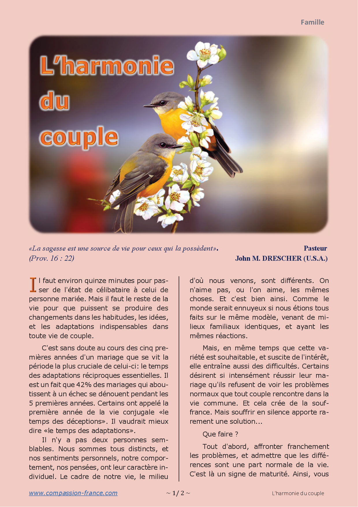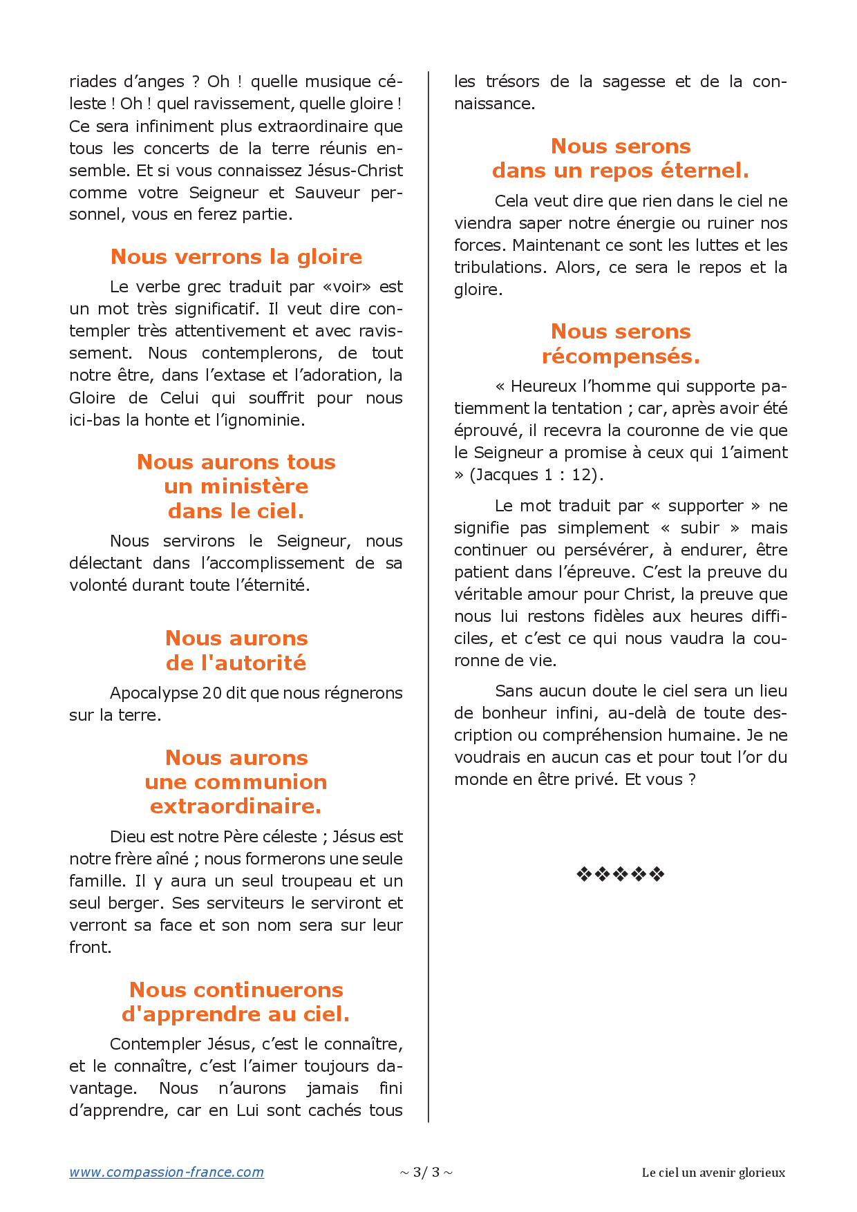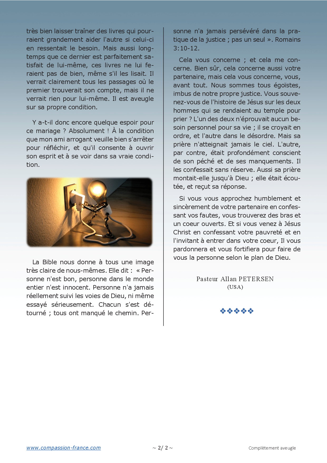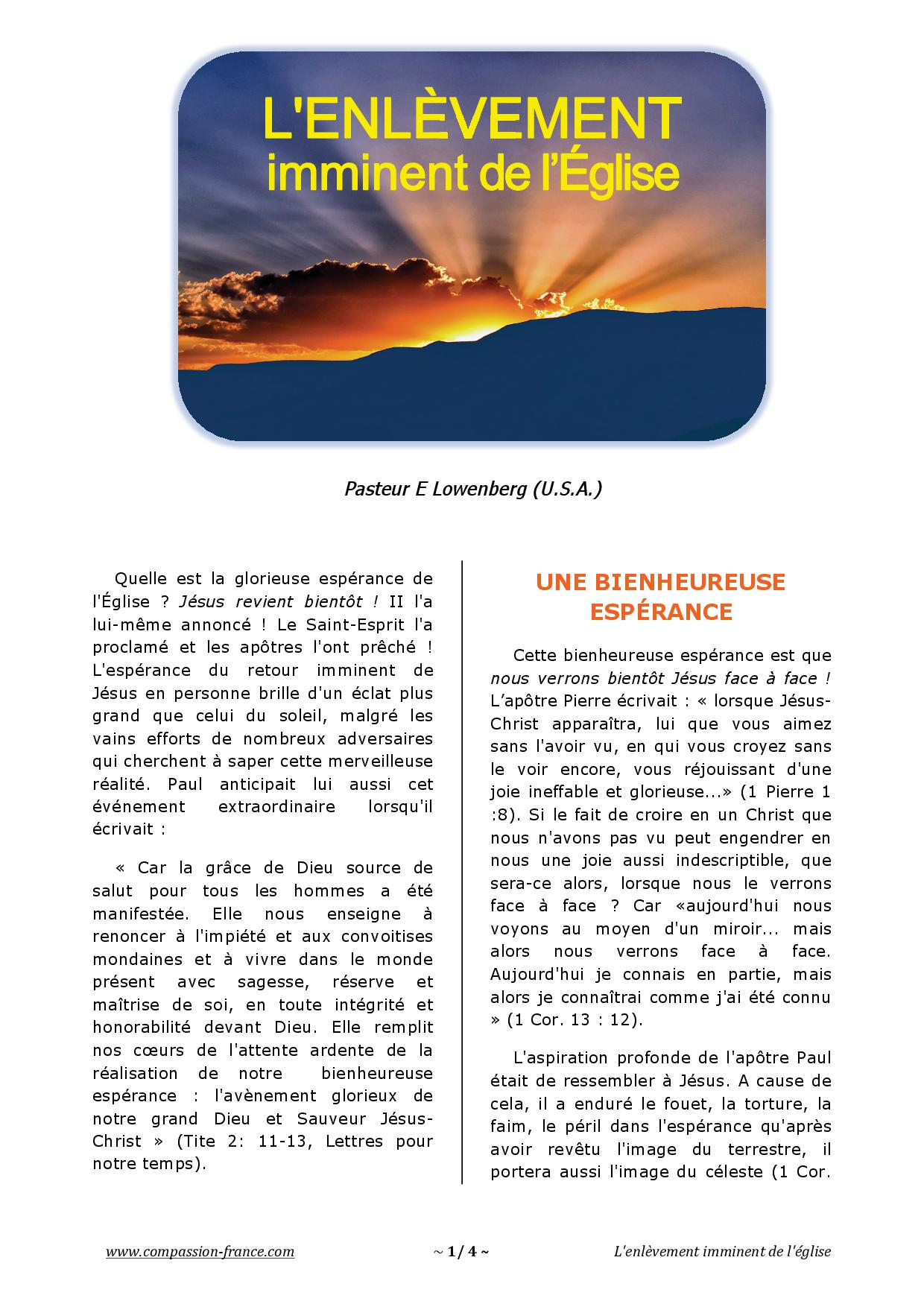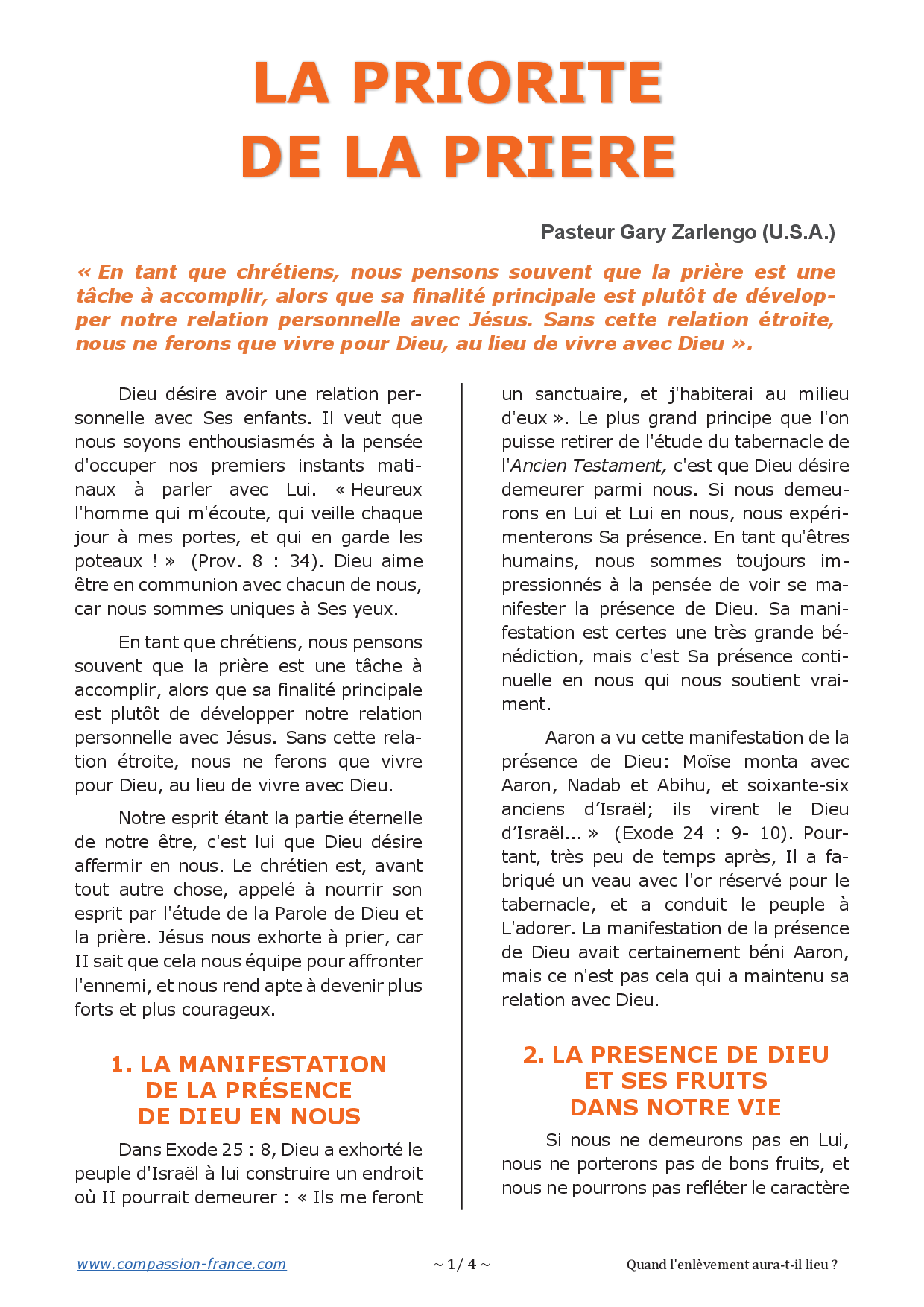 Nous avons ici le plaisir de mettre à votre disposition des messages, sermons et études bibliques de serviteurs de Dieu de nombreux pays, extraits de notre magazine Compassion, diffusé pendant 20 ans dans le monde. Tous ces articles vous seront d’une grande bénédiction pour votre vie personnelle et également une source d’inspiration précieuse pour le ministère.