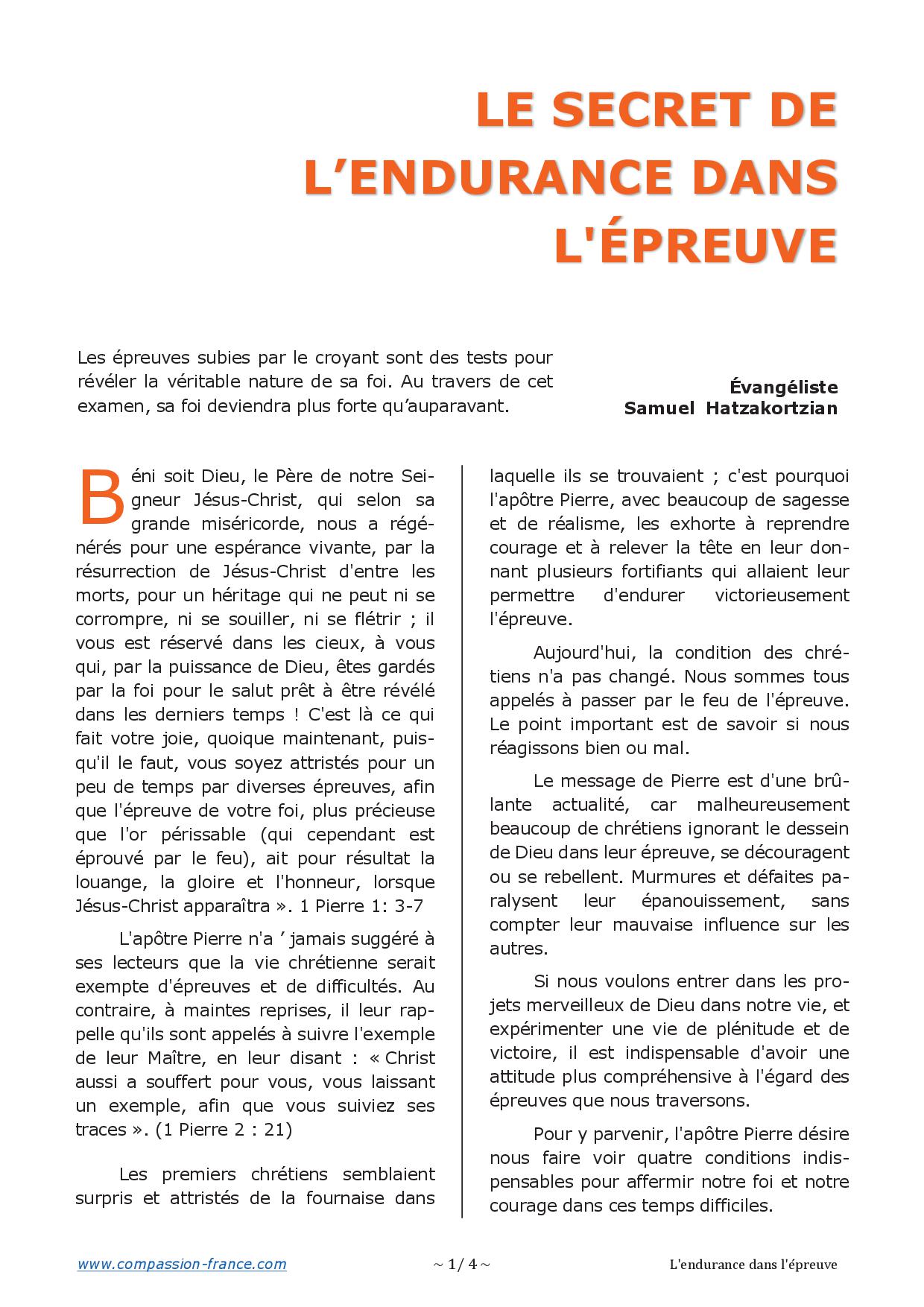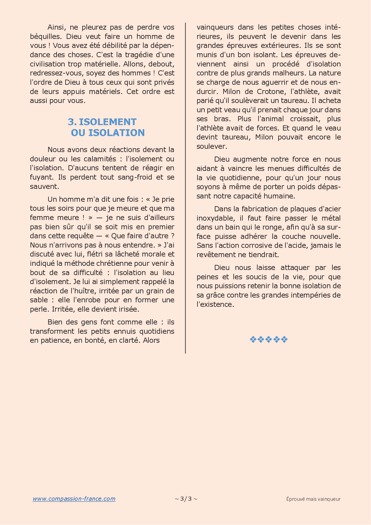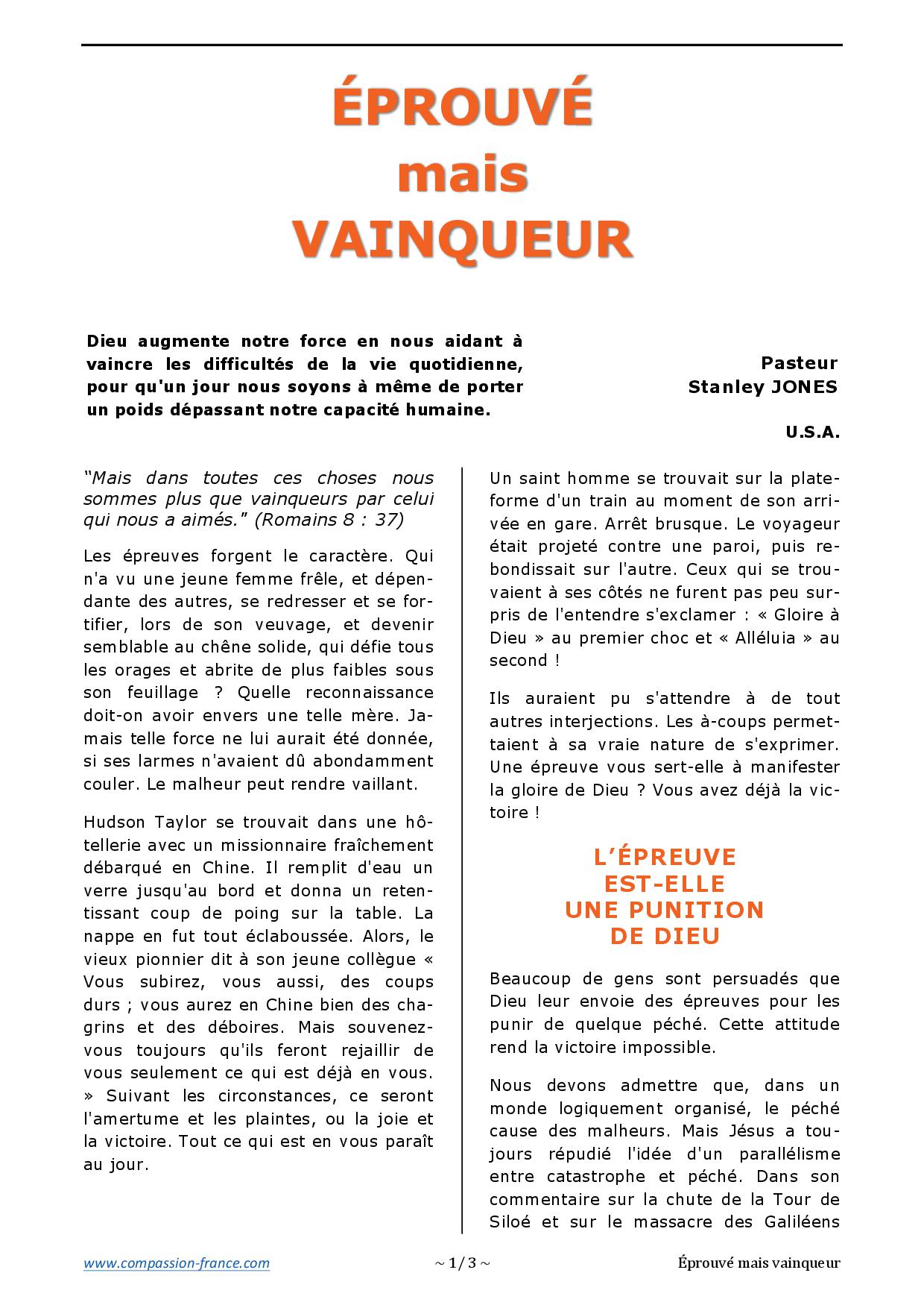 FOI, PERSÉVÉRANCE ET VICTOIRE