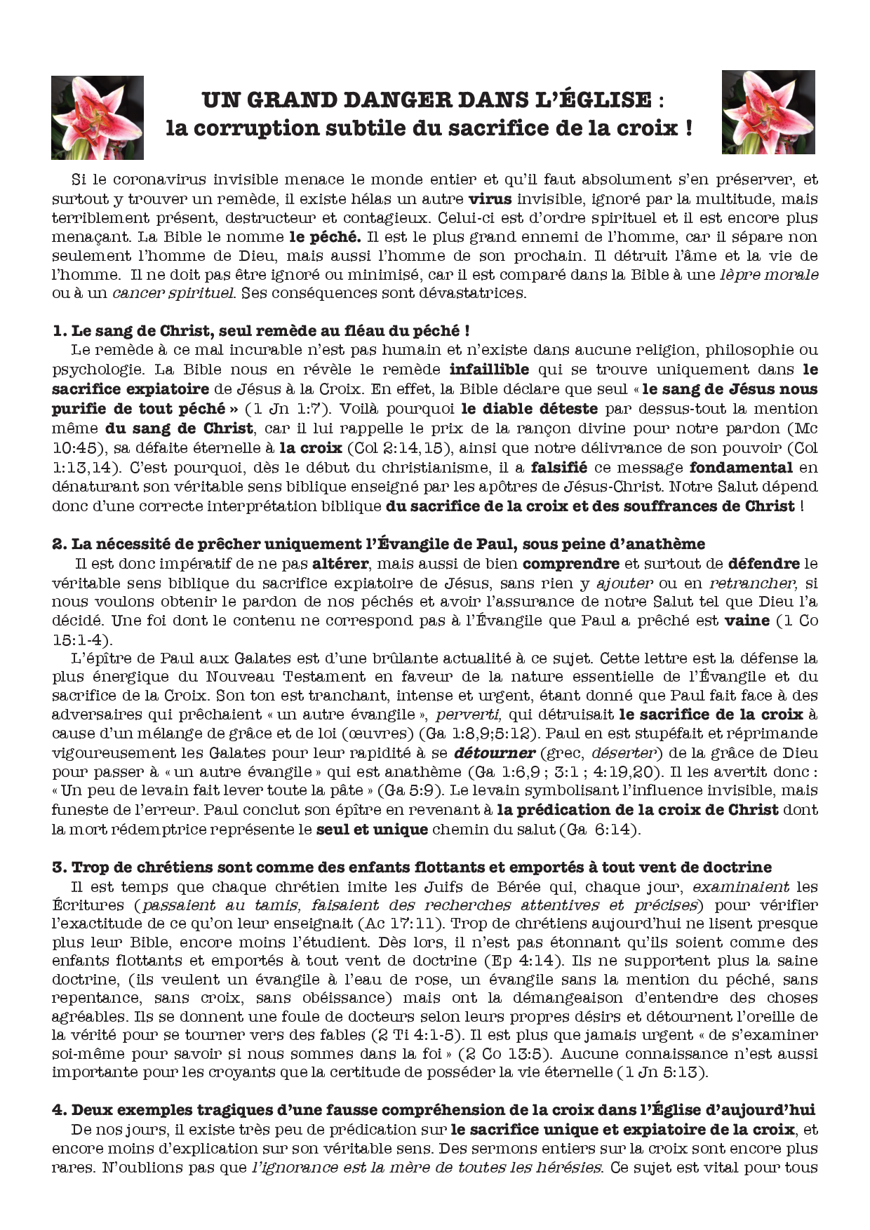 De nos jours encore, il existe des chefs religieux qui ajoutent des dogmes et des traditions humaines à la Parole de Dieu, causant ainsi une grande confusion en ce qui concerne le simple et pur message de l’Evangile libérateur de Jésus-Christ.