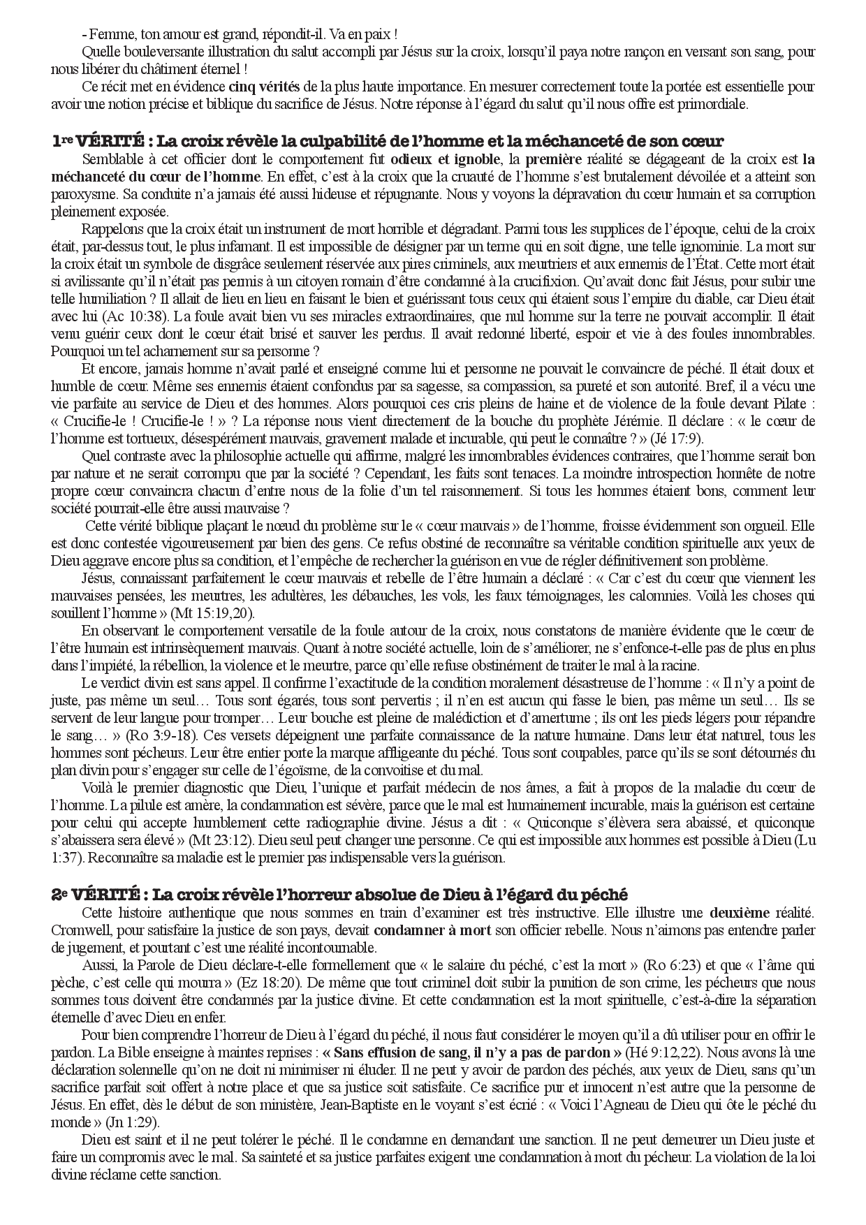 Ainsi, les personnes les plus difficiles à amener à la repentance sont les personnes religieuses. Pourquoi ? Parce qu’on les a persuadées que c’est leur religion qui les sauve et qu’elles n’ont pas besoin de se repentir. C’est la raison pour laquelle les églises sont remplies de personnes, certes respectables et aimables, mais dont la vie chrétienne n’a jamais commencé par une authentique conversion à Jésus-Christ.