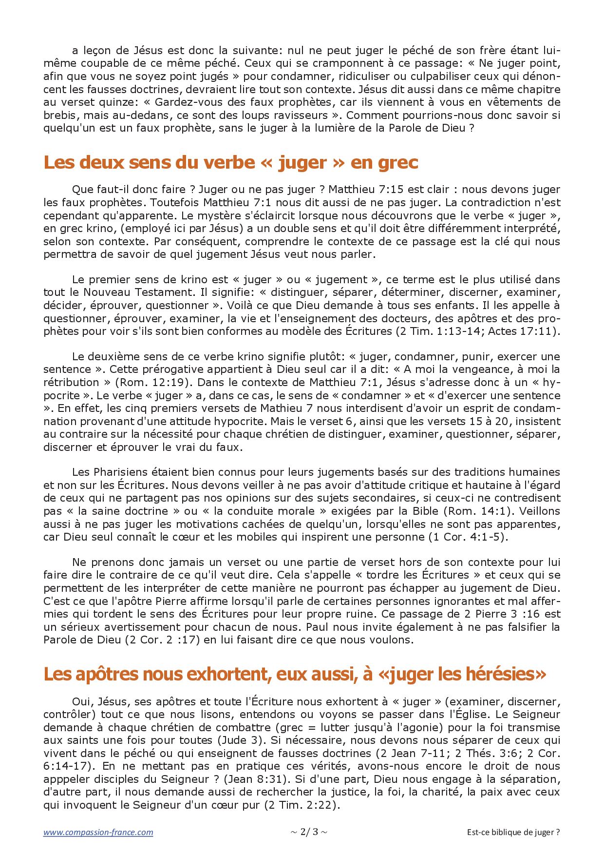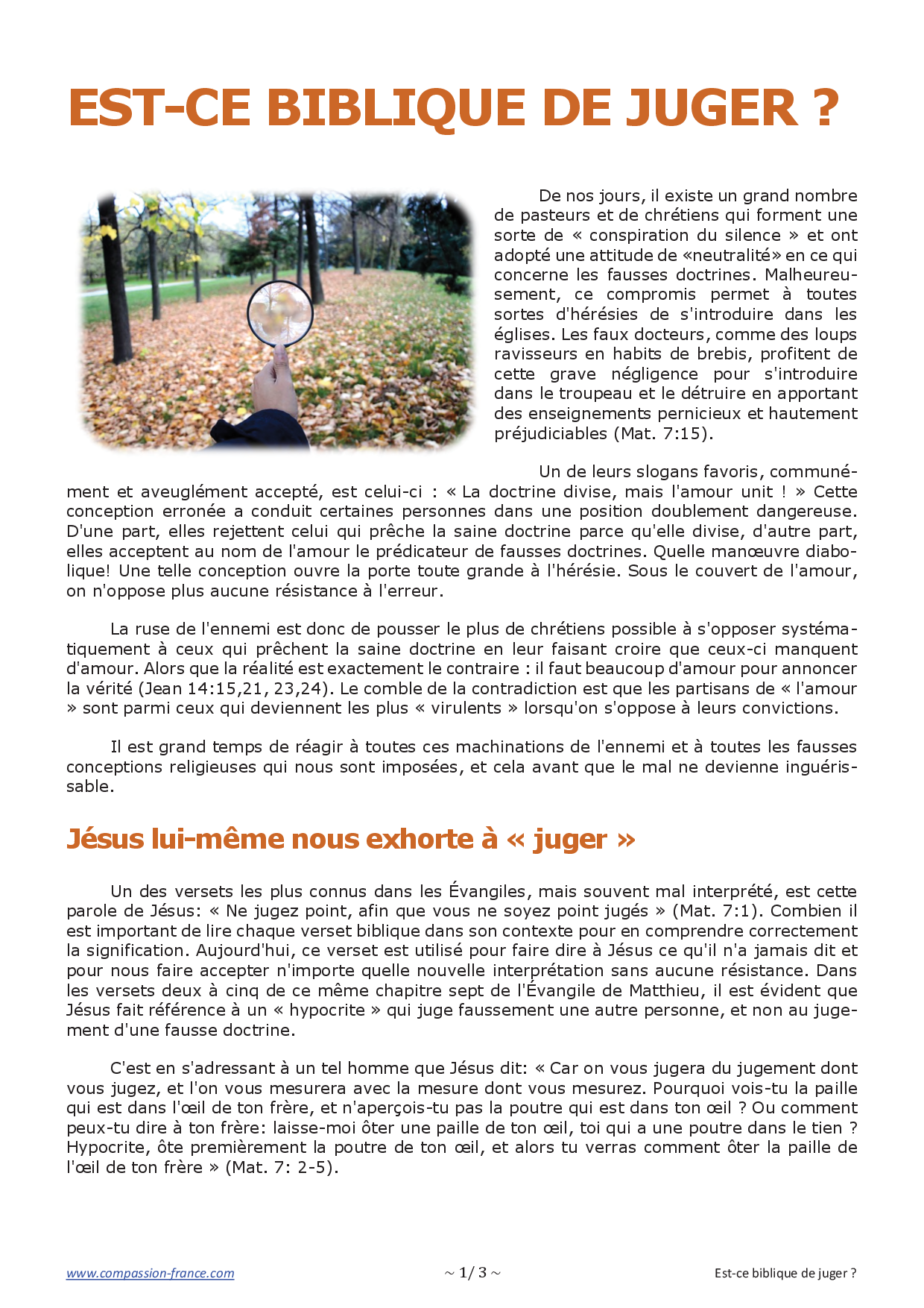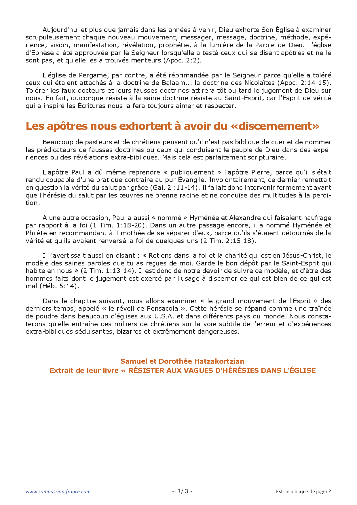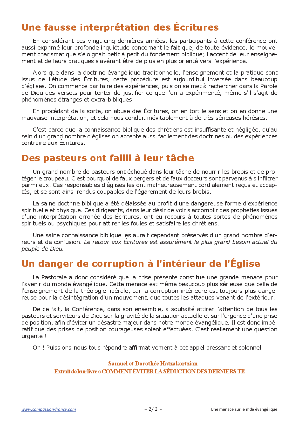 Cependant, de nombreux responsables « chrétiens » font exactement le contraire. Il est tragique de constater que, loin de protéger le troupeau du Seigneur, ils le conduisent sur le chemin du compromis et de la séduction. Il est une chose encore pire que la division, c'est la paix dans le compromis. La vérité est infiniment plus importante que cette fausse unité recherchée par tant de serviteurs de Dieu et chrétiens actuels.